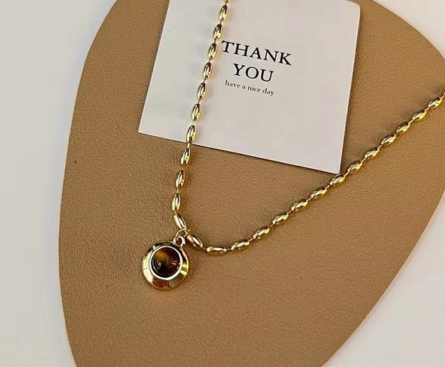 French Brown Natural Stone Pendant Necklace